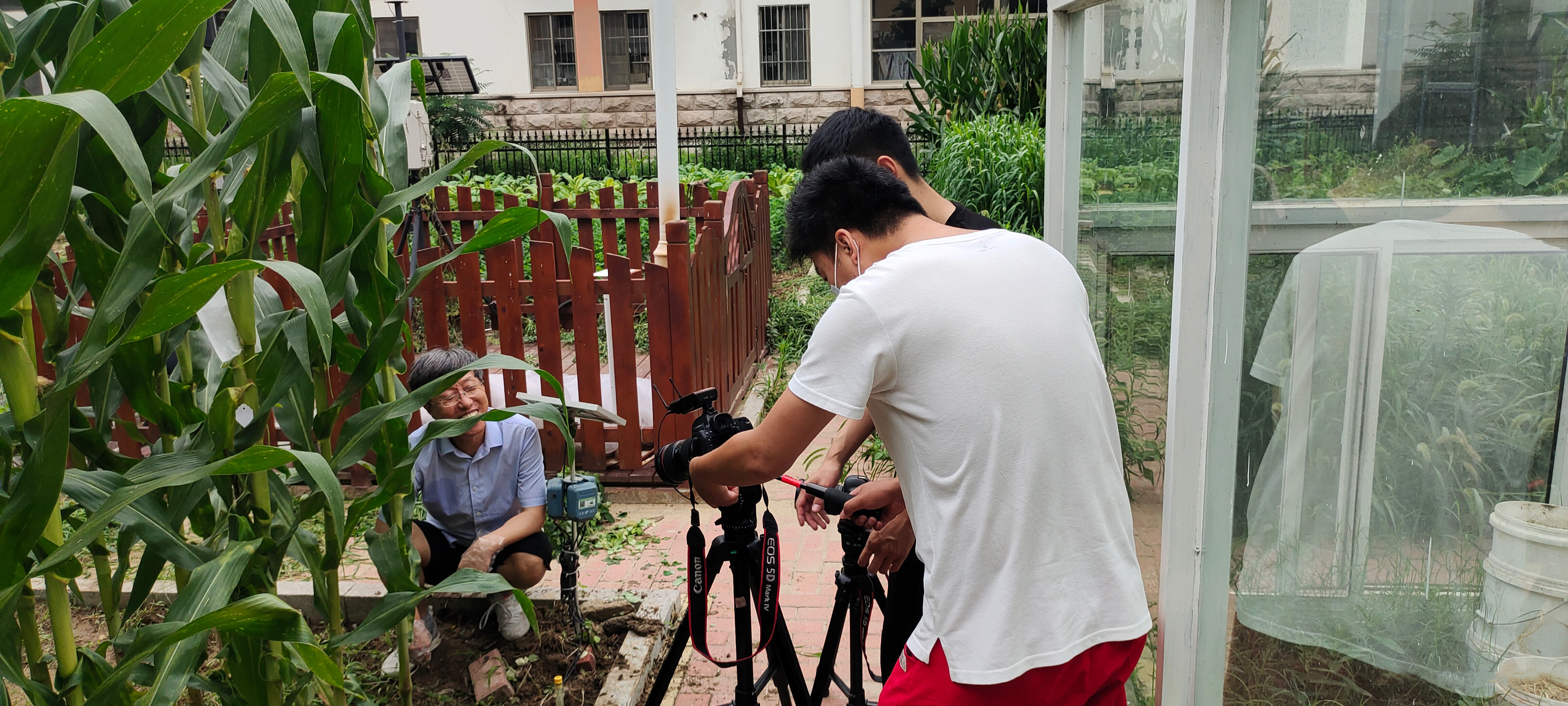 7月11日,15vip太阳成教授杨锦忠在作物认知园进行玉米花粒期栽培实验视频拍摄工作。拍摄前,他根据场景需要,选择有代表性的玉米植株,与导演和摄影师交流成片的要求,确定分镜机位,为了达到理想的效果往往需要重复拍摄几次。尽管天气炎热,杨锦忠还是坚持拍摄完了玉米花粒期田间素材。暑假期间,项目团队各位专业教师克服疫情困难,冒酷暑抢农时,如期开展水稻、玉米、大豆等作物的实验课视频录制。