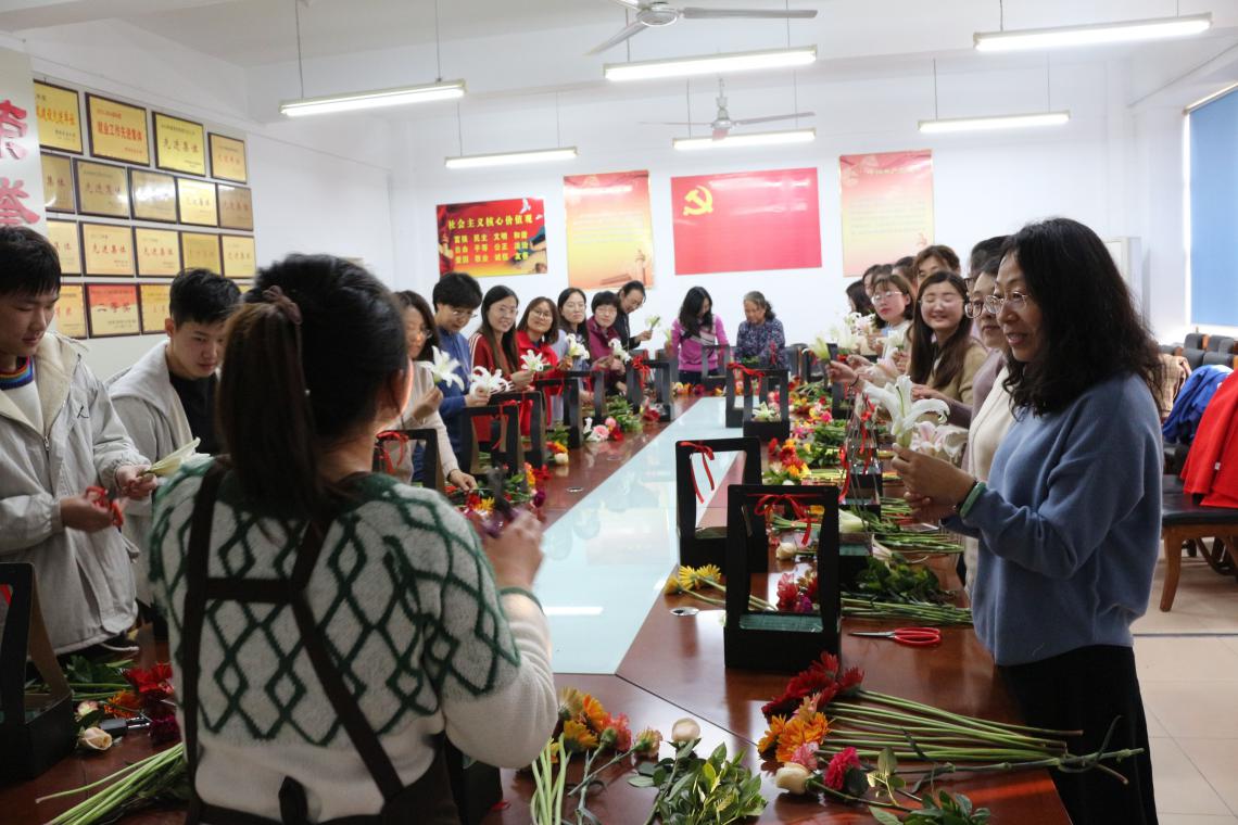 3月8日,为庆祝国际劳动妇女节,15vip太阳成于生物楼N区举行“魅力女性,美丽如花”插花活动,15vip太阳成党总支书记张玉梅和女教职工参与了此次活动,邀请了资深插花老师现场作指导。