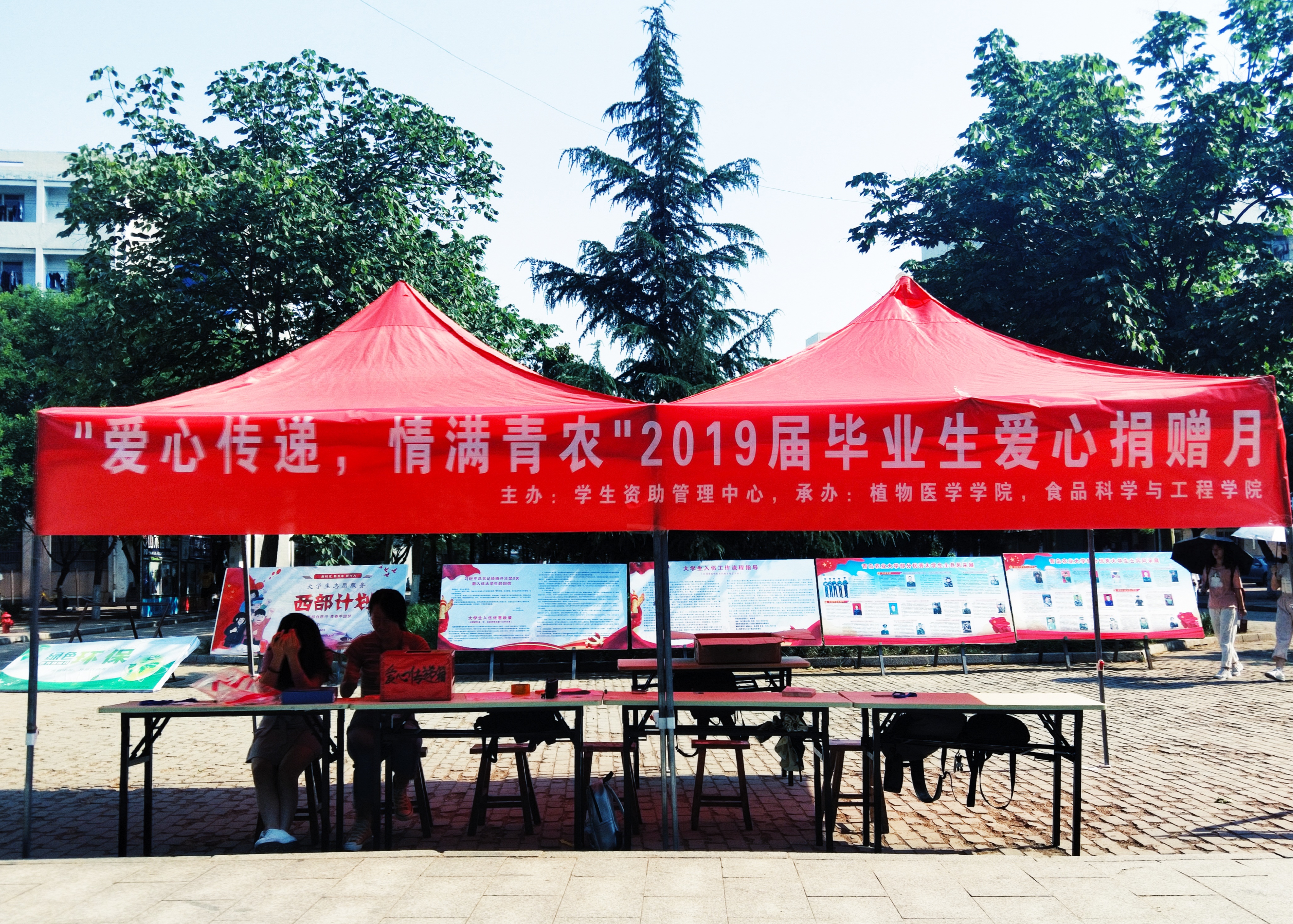 为使闲置物品发挥最大价值,奉献爱心,帮助他人,太阳成集团tyc151cc学生资助管理中心在东苑三号楼前举办“爱心传递、情满青农”2019届毕业生爱心捐赠月活动。15vip太阳成2019届毕业生积极参与。