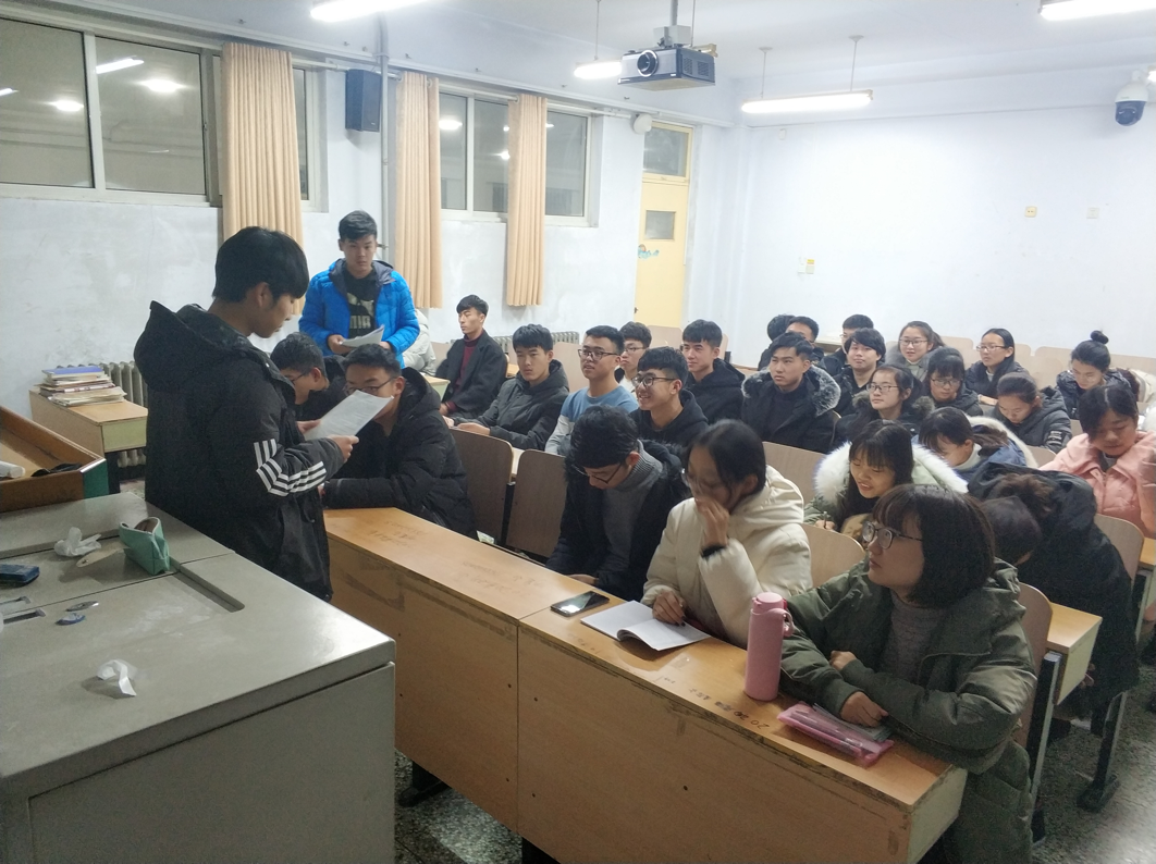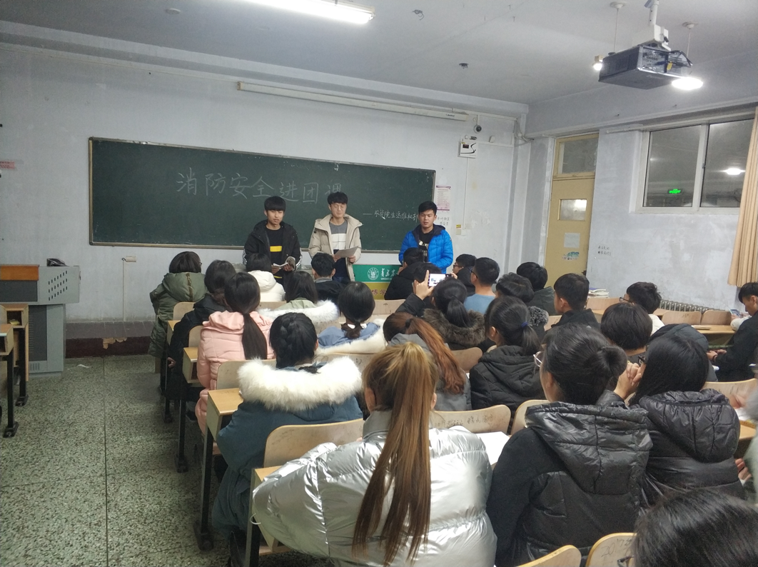 12月23日,15vip太阳成于教学楼开展消防安全进团课的活动,旨在让同学们了解消防常识,提高自我的保护能力。学生代表孙培峰,李亚伟,侯圣玺担任主讲并主持活动,2018级同学积极参加。