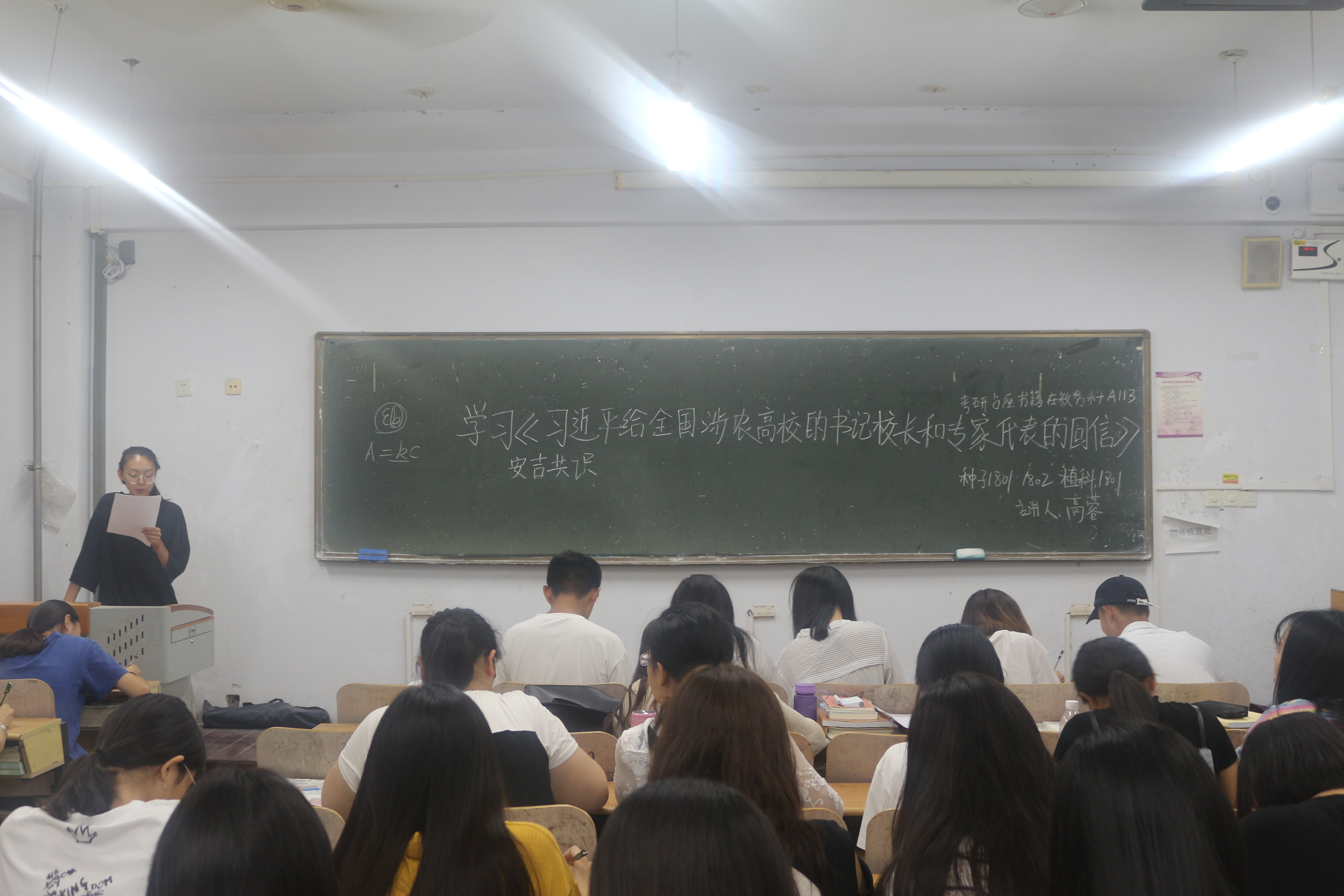 9月8日,15vip太阳成在教学区开展“学习《习近平给全国涉农高校的书记校长和专家代表的回信》”主题团课,2018级全体团员参加。
