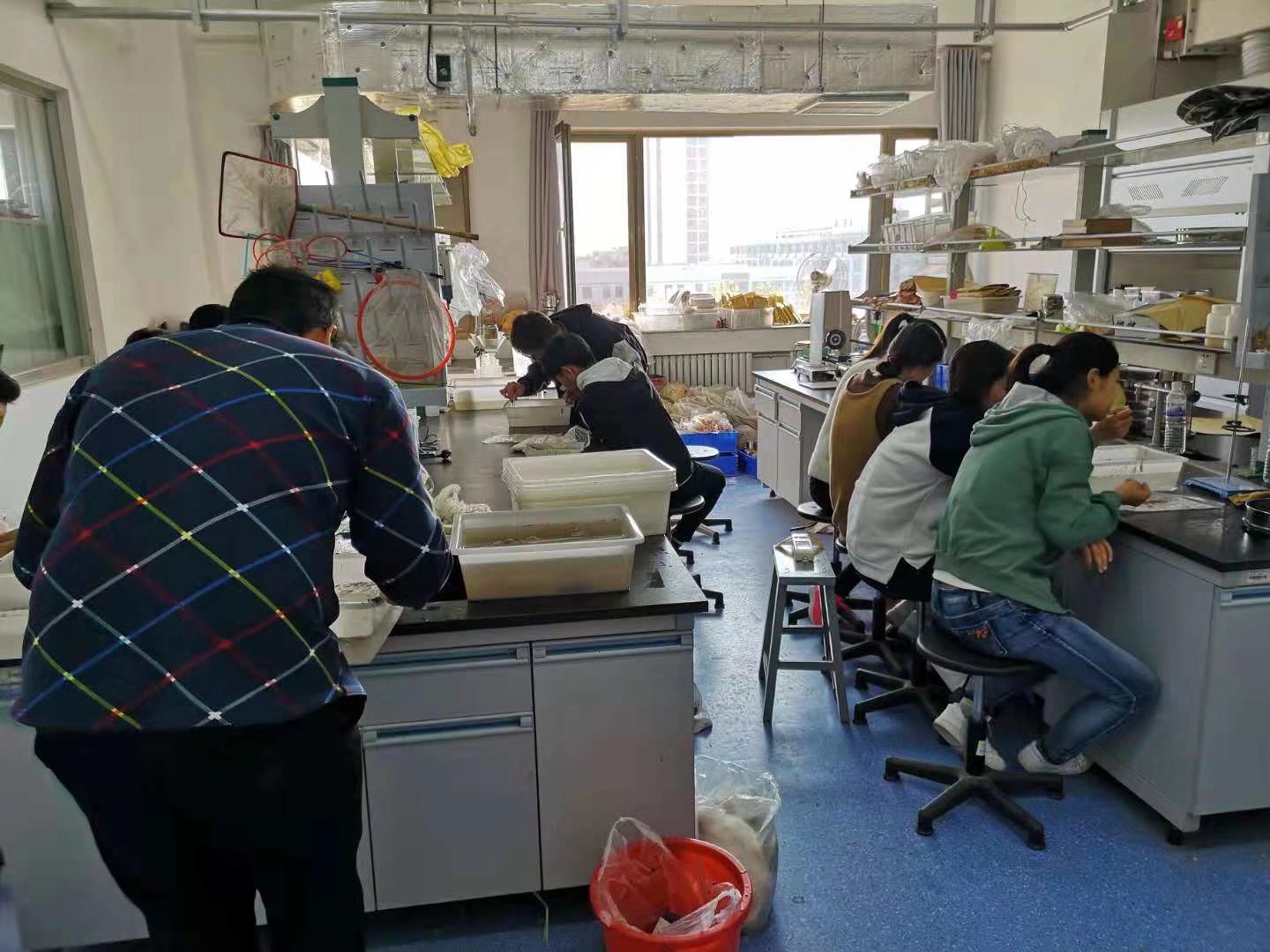 11月4日,15vip太阳成种子1801班全体同学走进科技楼实验室对玉米根进行挑拣。