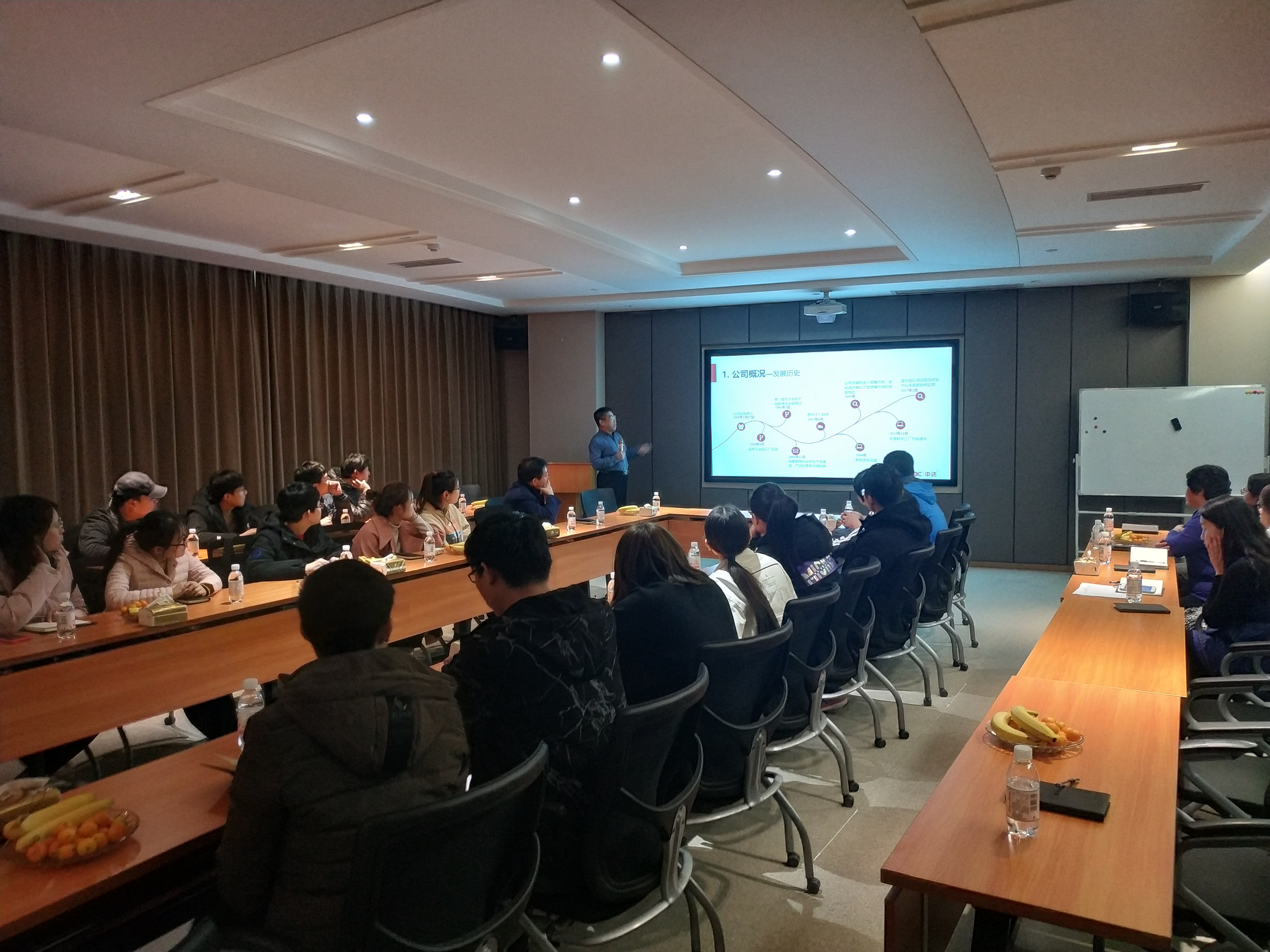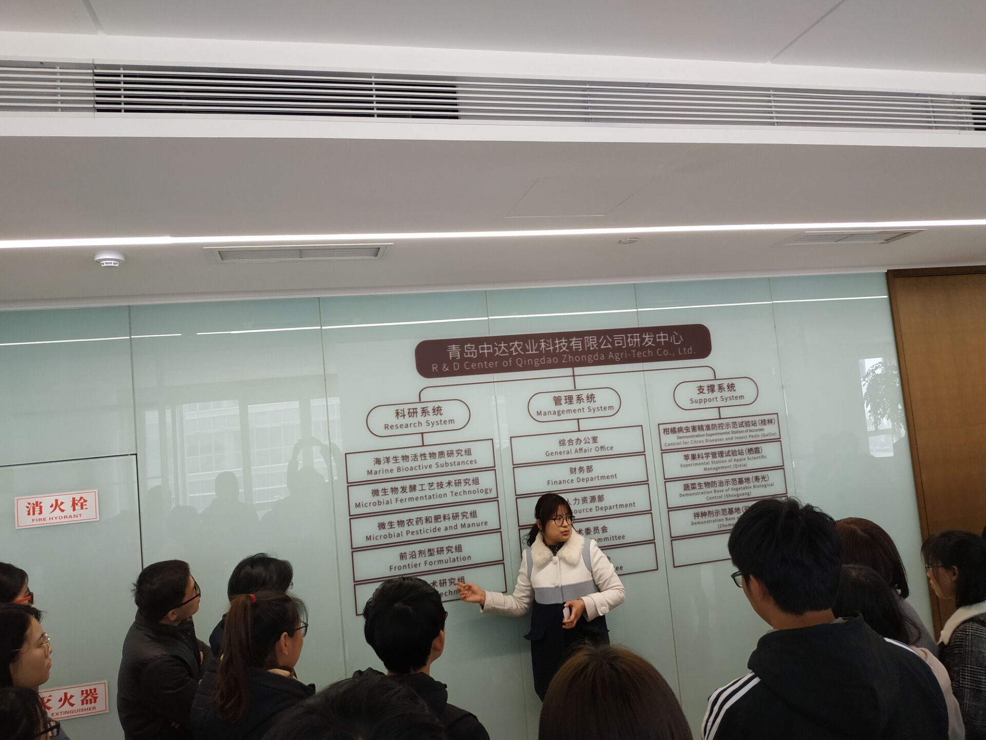 毕业生一行受到了中达公司的热情接待,行政人事部主管张文丽女士带领同学们参观了办公区、研发部实验室等区域,让同学们详细了解了企业架构、产品方向、运营情况等。董事长栾守业给毕业生们讲解了公司的成立、发展、壮大的过程,以及公司在人才、产品创新等领域的突出优势,并结合自身经历分享了创业过程中的点点滴滴、人生感悟,鼓励同学们要珍惜韶华、不畏艰难、干事创业,并且要担负起国家嘱托、社会责任。李军讲解了农学、植保等相关专业的就业前景,并希望同学们充分利用毕业前夕这段时间,积极主动的去了解行业企业,为顺利就业打下坚实基础。