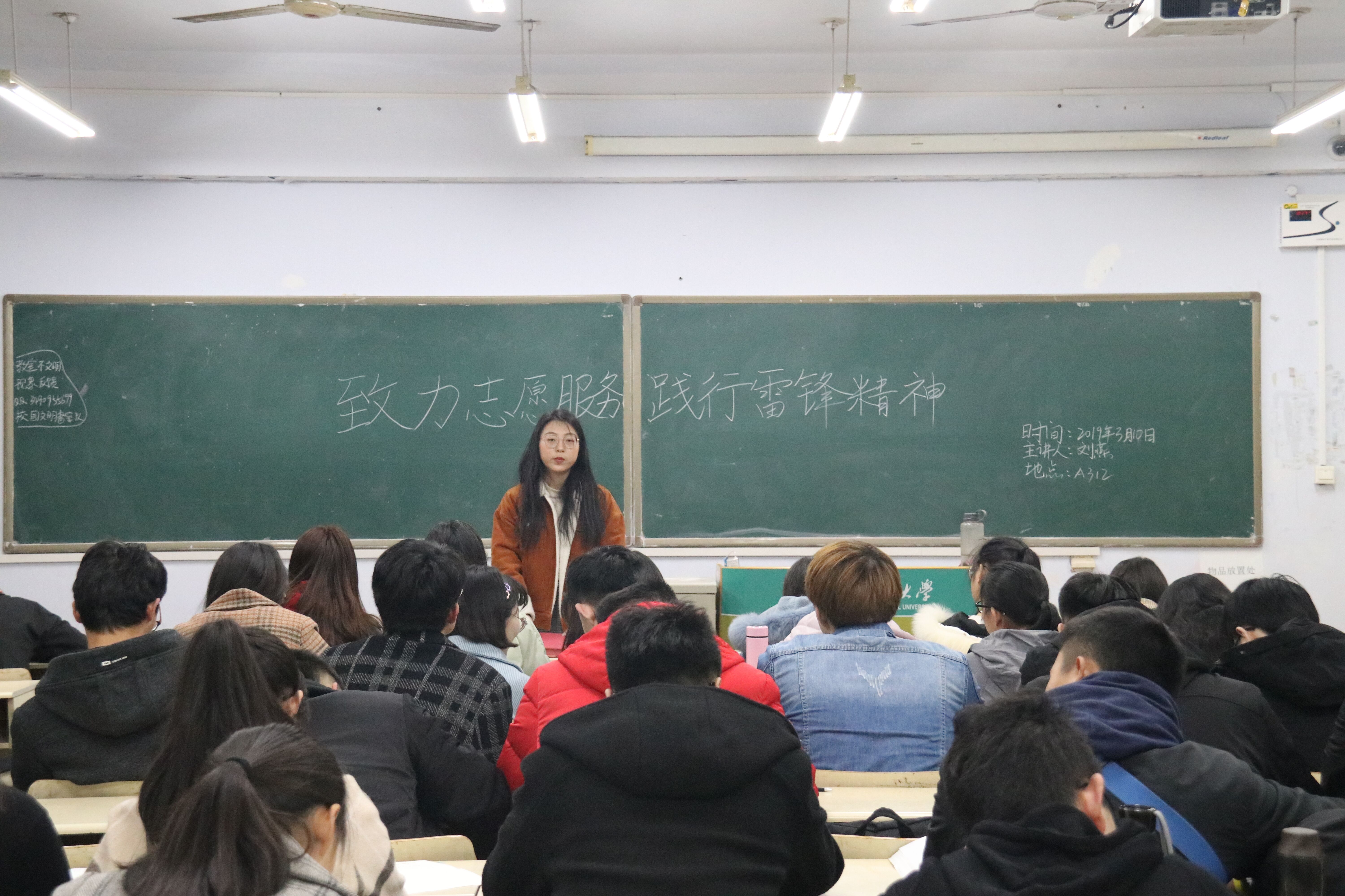 3月10日,15vip太阳成于教学区A区开展“致力志愿服务,践行雷锋精神”主题团课,旨在让学生们了解雷锋精神的内涵,提高其投身志愿活动的积极性,15vip太阳成2017、2018级全体学生积极参加。