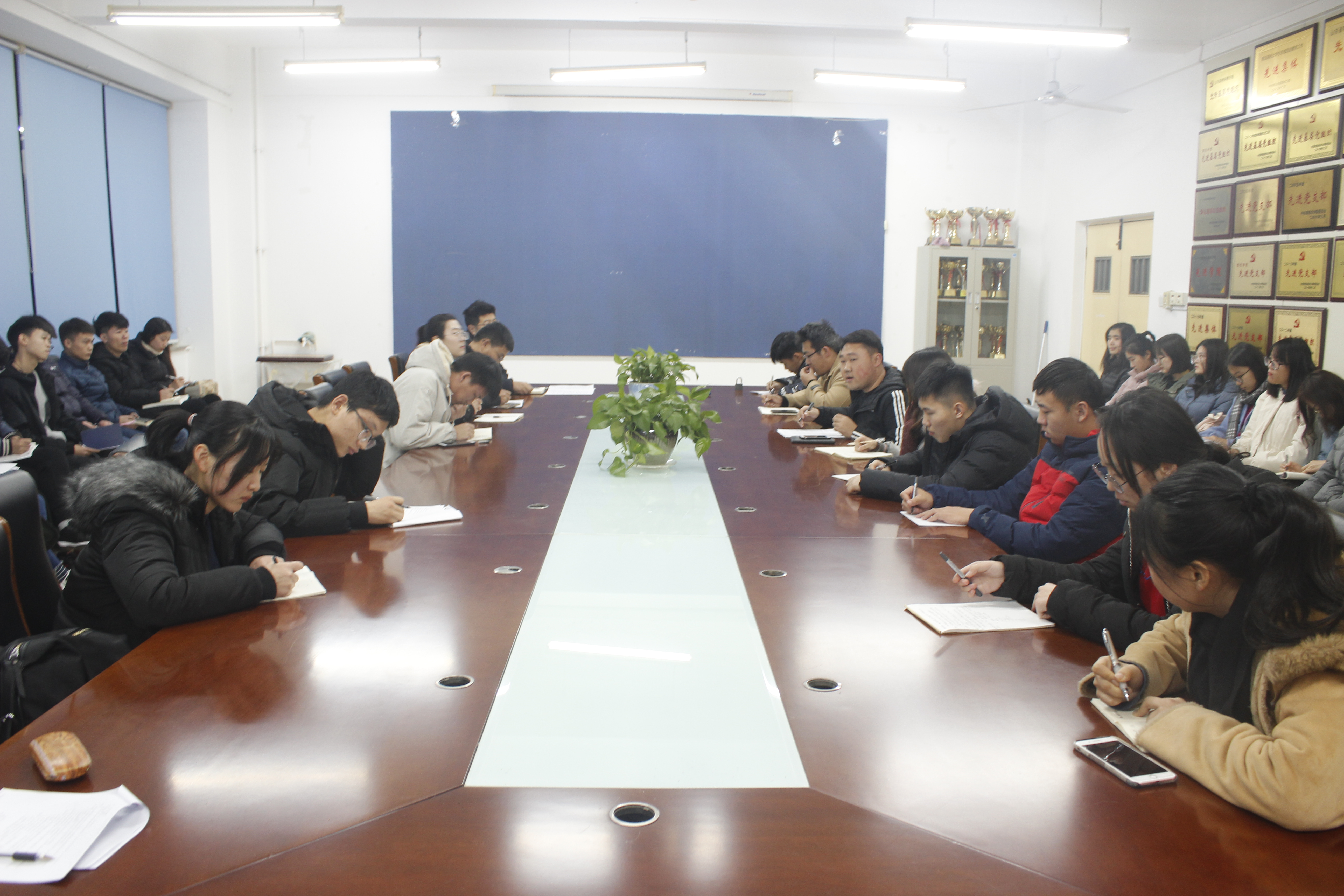 12月26日,15vip太阳成在生物楼N区召开班长书记例会,学院团委书记姜涛,辅导员谷元兴、刘宁及全体班长书记出席会议。