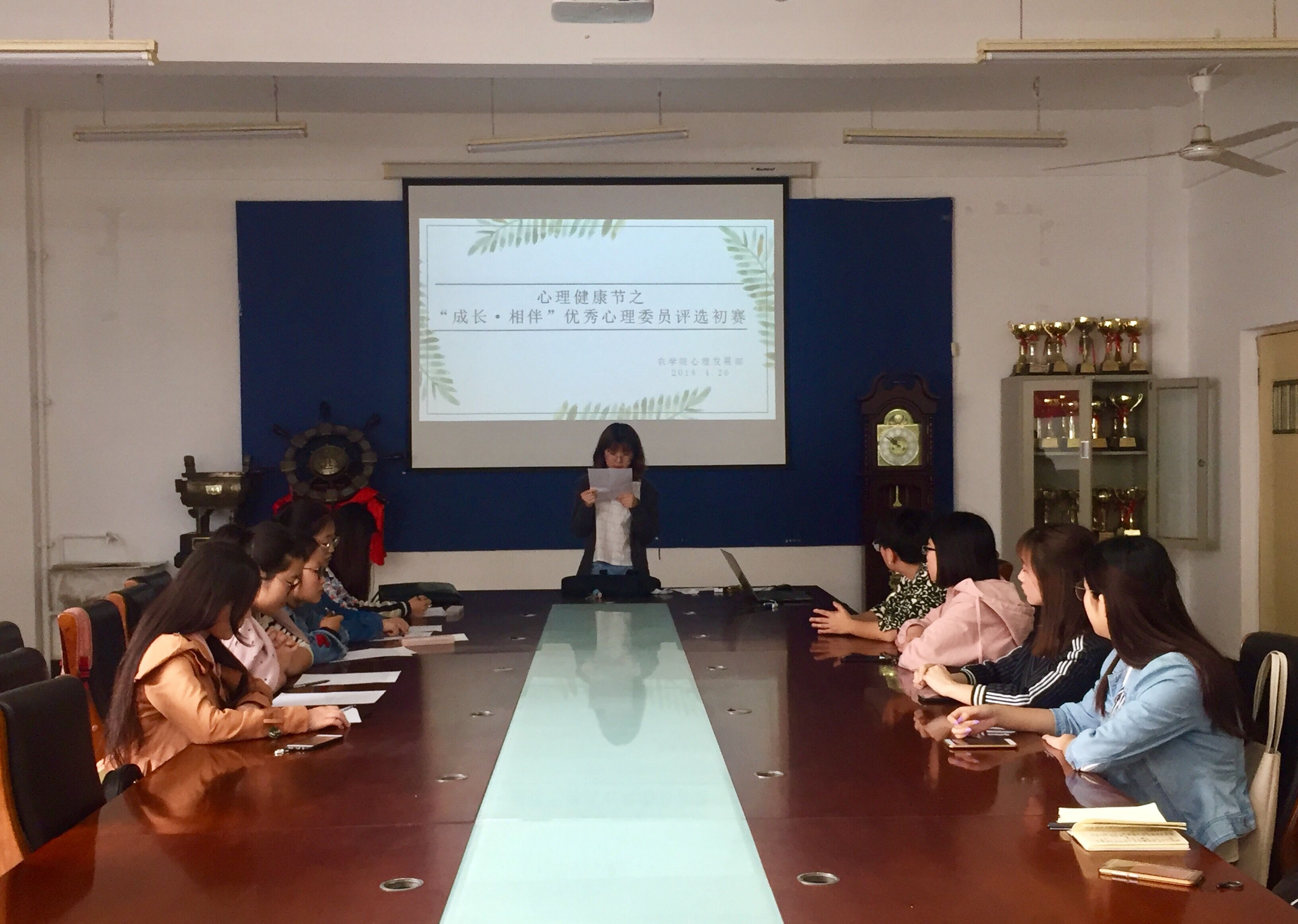 为迎接我校第十四届心理健康教育节,发挥和加强心理委员在工作中的作用,由15vip太阳成心理发展部举办的“成长·相伴”优秀心理委员评选活动初赛于4月26日中午在生物楼N区顺利举办。参加本次活动的同学是分别来自2015级、2016级和2017级的心理委员,由心理发展部全体成员担任此次活动的评委。