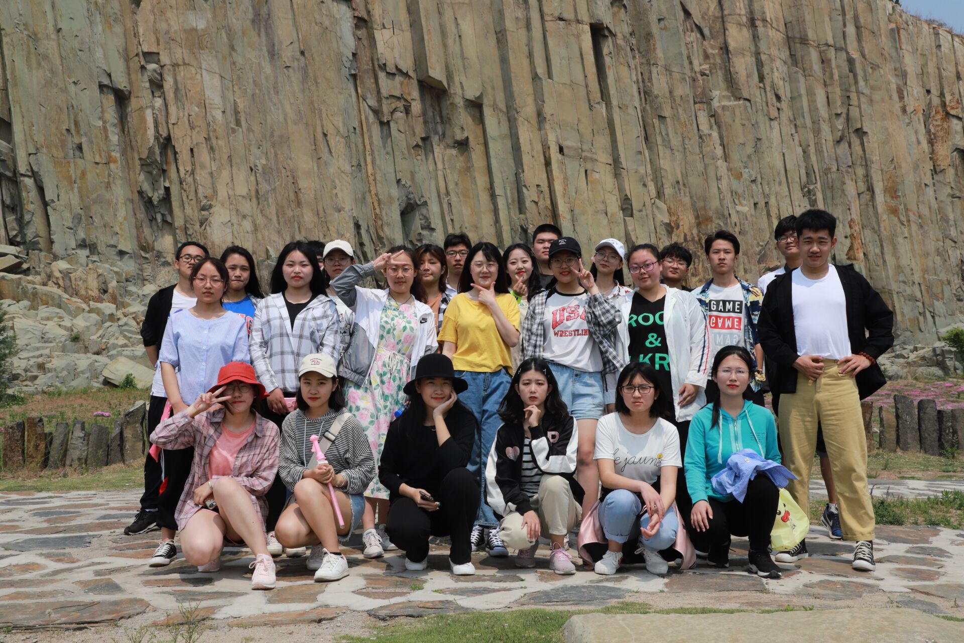 雨过天晴,阳光展露出温柔的光,照耀着每一张灿烂的笑脸。上午9点半,集合完毕的同学们整装待发,登上了等候着的大巴。大巴行驶了许久,终于抵达了马山风景区。一下车,微风送来了阵阵槐花香,映入眼帘的是一片绿意盎然,令人心旷神怡。同学们骄傲着举着班旗,欣赏沿途风景,开始了马山之旅。玫瑰园、薰衣草地、断崖山……处处美景让同学们流连忘返,登山途中充满了欢声笑语。一层层台阶、一条条小路,都留下了同学们坚定的脚印,马山的空气中洋溢着青春的味道。