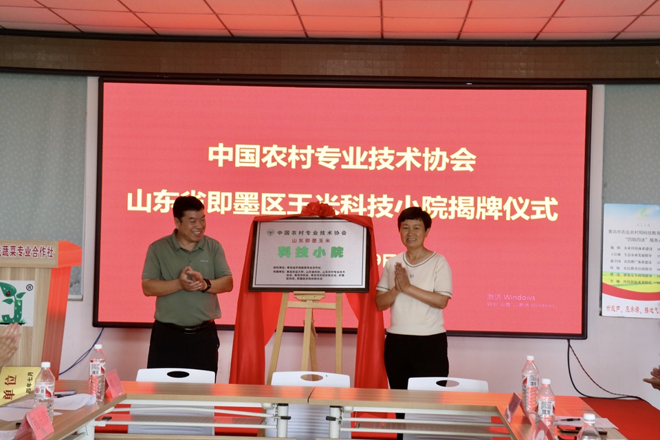7月29日,太阳成集团tyc151cc“山东即墨玉米科技小院”揭牌仪式暨访企拓岗活动在青岛地平线蔬菜专业合作社举行,15vip太阳成院长马武军、副书记孙占伟、副院长张恩盈,即墨区移风店镇党委副书记、镇长迟洪超,即墨区科学技术协会党组成员于垂胜,青岛地平线蔬菜专业合作社理事长姜波及青春“乡”约暑期实践团师生代表等参加此次揭牌仪式。仪式由张恩盈主持。