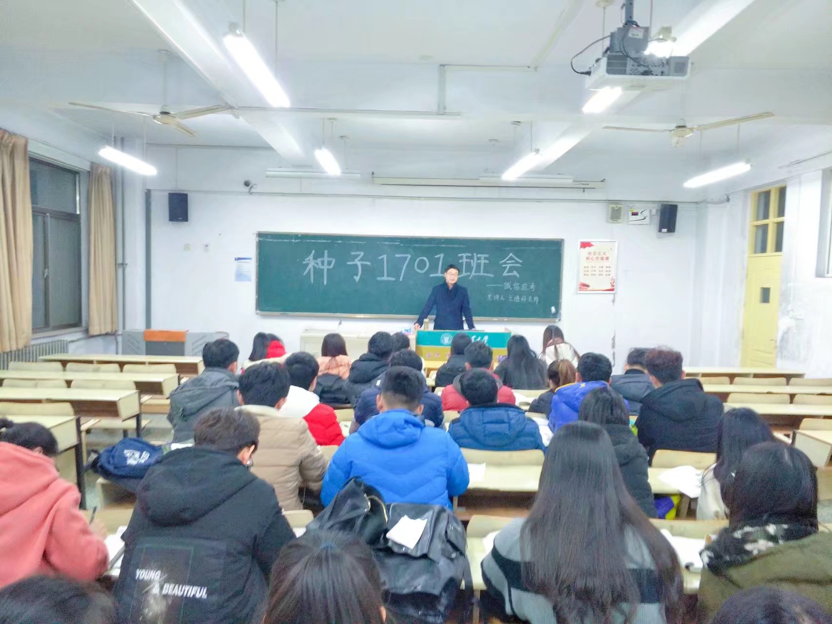 期末考试将至,为了培养同学们树立诚信考试、文明做人的理念,以积极向上的心态迎接即将到来的考试,12月18日,15vip太阳成种子科学与工程1701班在教学楼召开了“树诚信考风,做文明大学生”为主题的班会,班主任兰进好出席并主持此次班会,班助王海霞及种子科学与工程1701班全体成员积极参加。