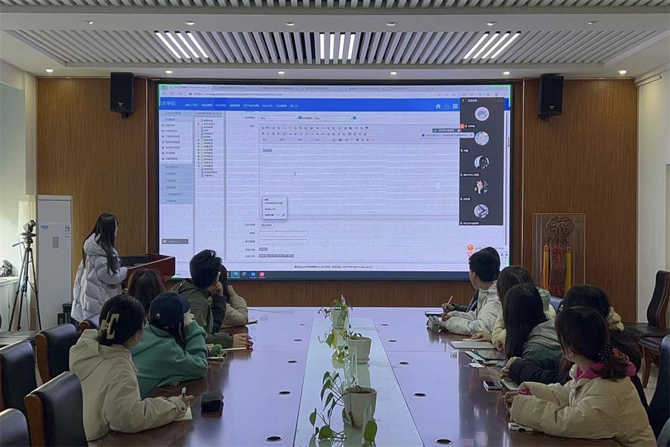 会议伊始,李萍萍从网站管理、栏目设计、内容维护等方面进行了详细讲解和实践指导,为同学们系统的介绍了网站系统后台管理界面功能以及信息发布、文档导入、权限管理等操作方法,让同学们对网站维护的操作和管理有了清晰的认识。培训过程中,老师和同学们积极参与讨论,提出了在网站运营中遇到的各种问题,李萍萍认真倾听同学们的疑问,并针对性地给予解答和建议,增长了同学们的网站维护知识。