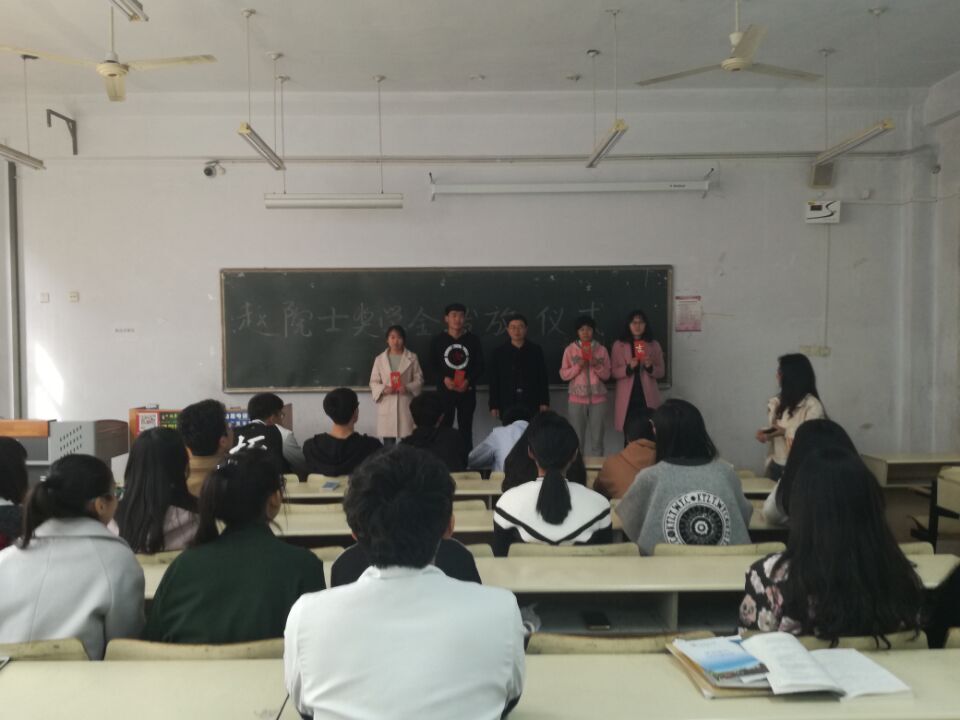 此次班会由班主任穆平老师主持,首先班主任先对上学期的学习工作做了一个总结,然后让班级的班委会的每个同学对自己上个学期做的工作做了一个总结报告。随后,让班级内成绩优异的同学分享了自己的学习方法和学习经验,班主任对他们做出了高度评价和鼓励,班主任借此班会,对成绩优异的同学发放了赵院士资助的奖学金。最后班主任强调了宿舍工作,强调加强宿舍的工作。