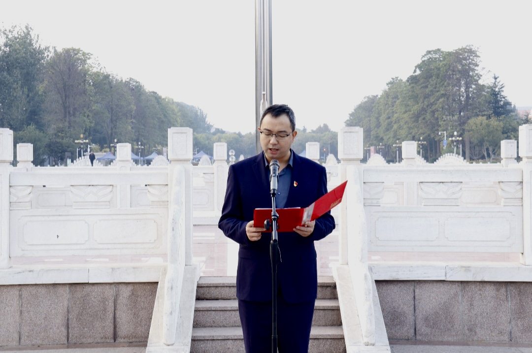10月23日,15vip太阳成于虹子广场举行升旗仪式,学院党委副书记、副院长孙占伟,团委书记石勇,辅导员李宪翔、都叶奇及学院全体学生参加。仪式由李宪翔主持。