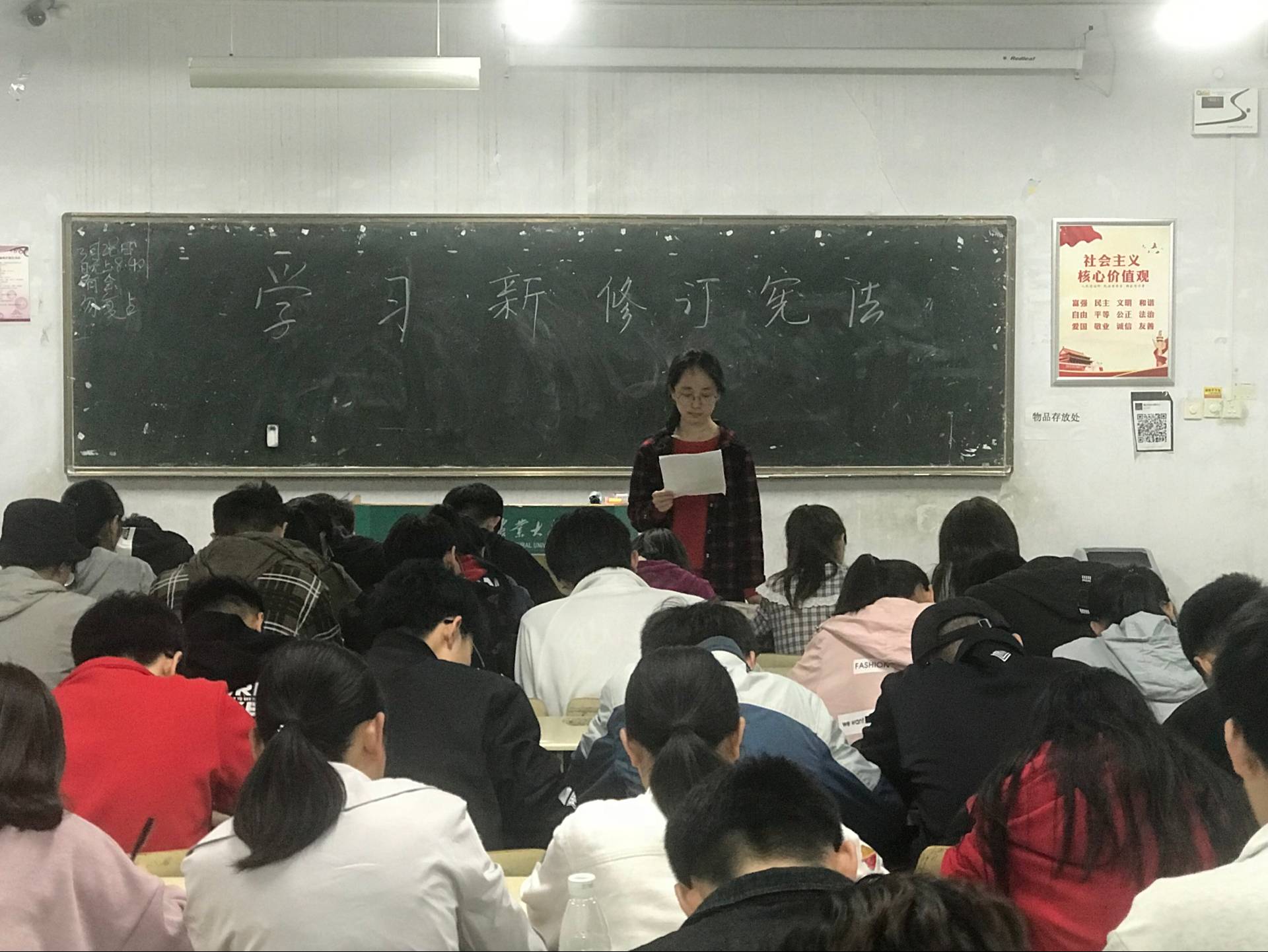 为增强宪法观念,弘扬宪法精神,4月1日,15vip太阳成在教学区A区开展学习《中华人民共和国宪法修正案》主题团课,2016级和2017级全体同学积极参加。