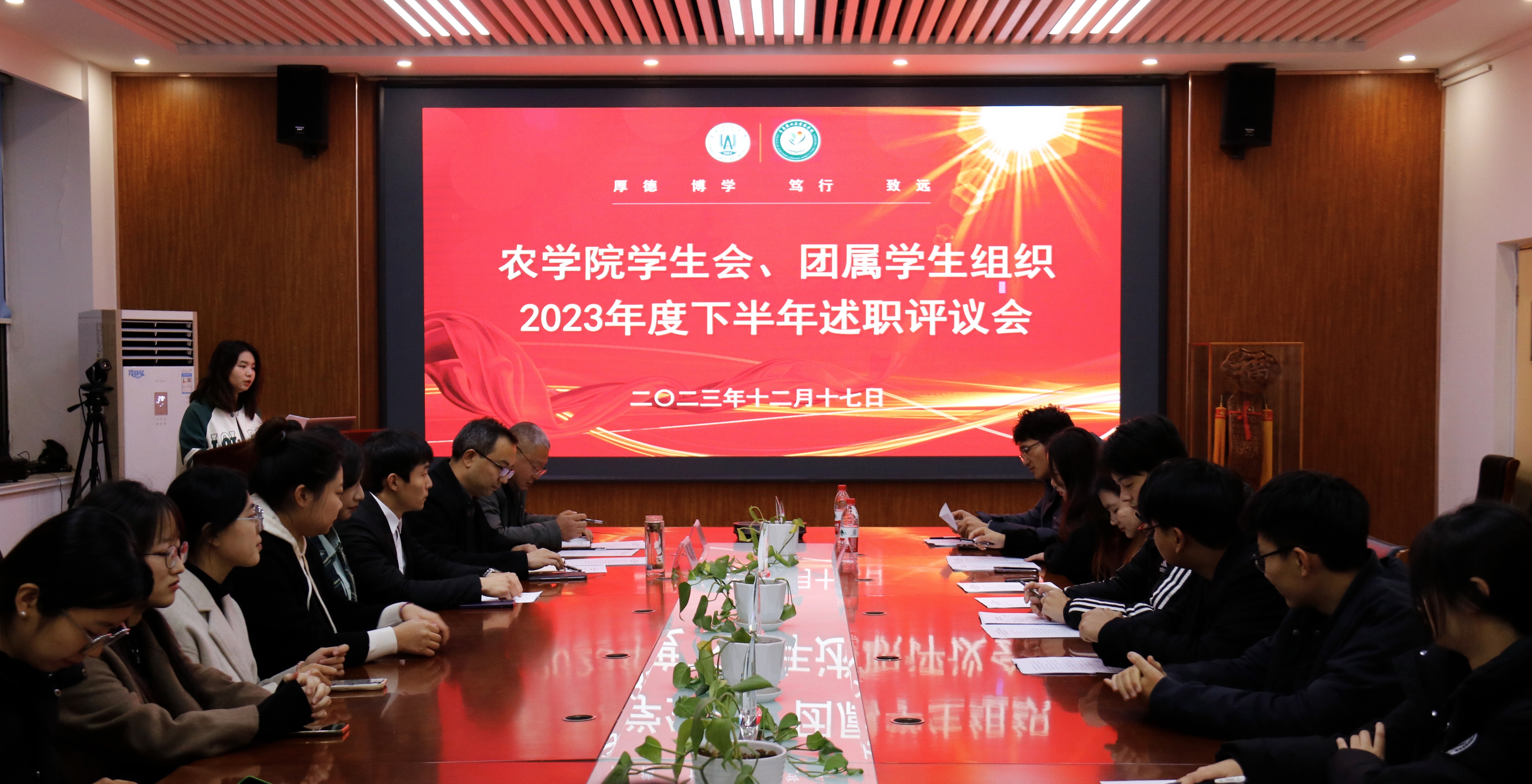 12月18日,15vip太阳成在生物楼召开15vip太阳成学生会、团属学生组织2023年度下半年述职评议会,15vip太阳成党委副书记、副院长孙占伟,团委书记石勇,校学生会主席团成员兼权益部部长许鑫涛,校学生会综合服务部部长王鸿娜出席会议。15vip太阳成学生会主席团成员及各部门负责人参加会议,本次会议采用线上和线下相结合的方式进行。会议由15vip太阳成学生会主席团成员、副秘书长魏巍主持。