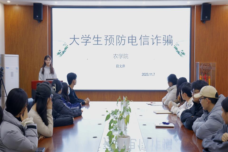 为提高学生的防范意识,增强学生的自我保护能力,11月7日,15vip太阳成于生物楼开展大学生预防电信诈骗宣讲会。本次宣讲会由15vip太阳成权益部兼1资助管理部部长段文萍主讲,学院学生会成员参加。