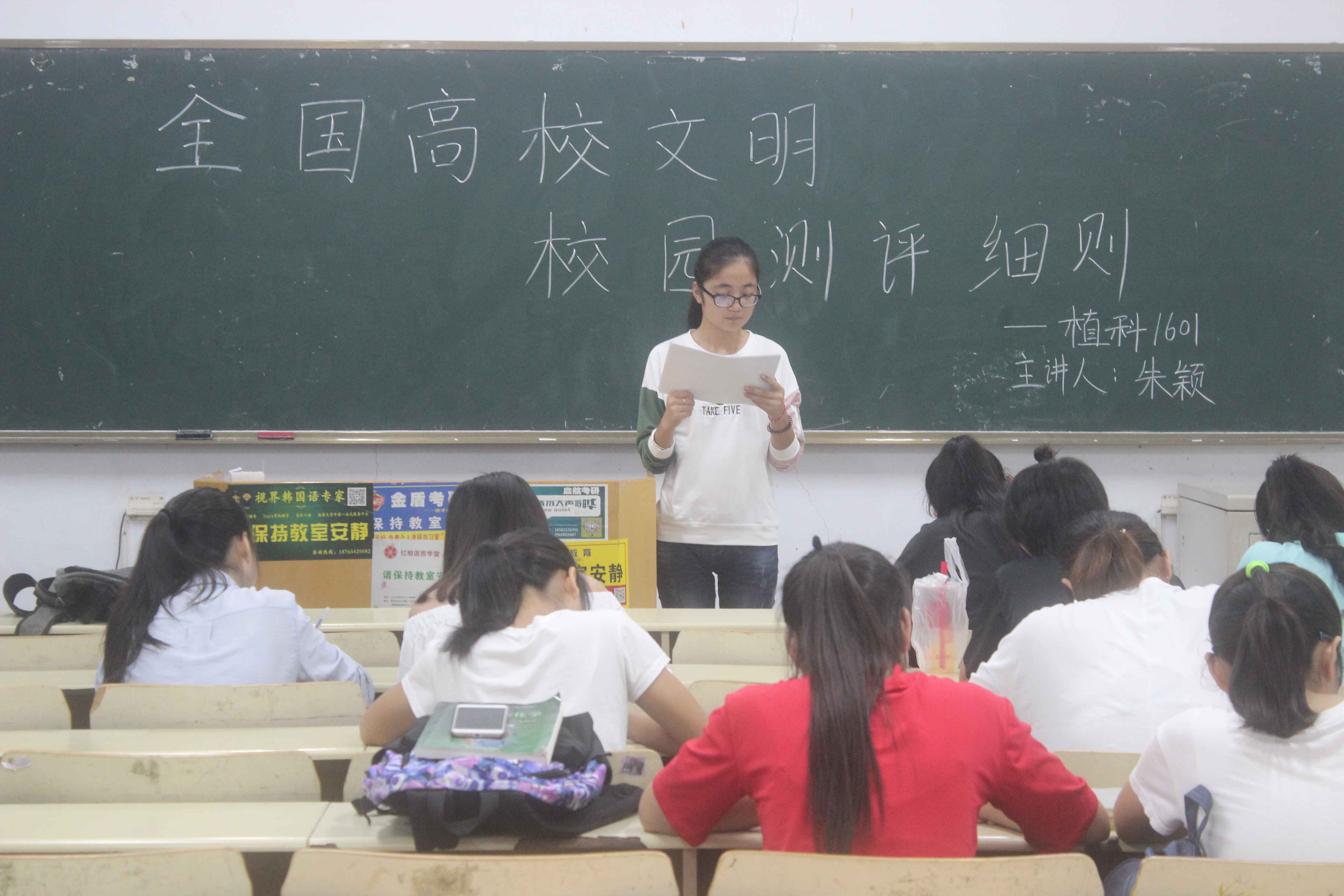 根据中央文明办、教育部制定的高校文明校园标准,15vip太阳成于9月3日在教学区开展“育人为本,德育为先”主题政治学习活动,学习《全国高校文明测评细则》,16级全体同学积极参加。