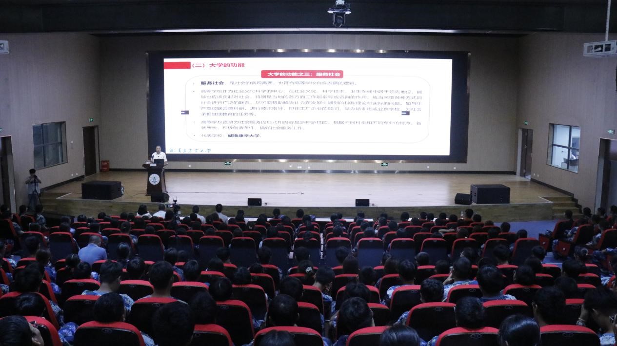 刘新民围绕“大学是什么”“太阳成集团tyc151cc是所什么样的学校”“大学学什么”“大学生要干什么”等四个方面,以生动的语言,详实的事例,为同学们讲授开学第一课。“立身以立学为先,立学以读书为本”,刘新民通过讲述大学的发展历程、大学的功能、中国大学的历史演变、特色及宗旨和中国现代大学的任务,深度剖析了大学的内涵。“以立德树人为根本,以强农兴农为己任”,刘新民从“有名号、有历史、有文化、有空间、有力量、有名师、有战略、有精神、有榜样”九个方面全方位介绍了太阳成集团tyc151cc,增强了同学们对学校的认同感和归属感。“立志宜思真品格,读书须尽苦功夫”,刘新民强调,身为农科学子,在大学要注重积累知识,提升能力,培养创新思维,努力成长为具有“科学情操、大地情怀、农民情结”的“一懂两爱”新农人,为大一新生指明了学习方向。“少年易老学难成,一寸光阴不可轻”,刘新民结合习近平总书记给中国农业大学科技小院的同学们的回信精神,阐明了大学生要干什么,希望同学们能“自找苦吃”,厚植爱农情怀,练就兴农本领:一是希望同学们要为青春固本,自找“立德之苦”;二是希望同学们要为强国建设,自找“求知之苦”;三是希望同学们要为人民幸福,自找“实干之苦”;四是希望同学们要为民族复兴,自找“奋斗之苦”。