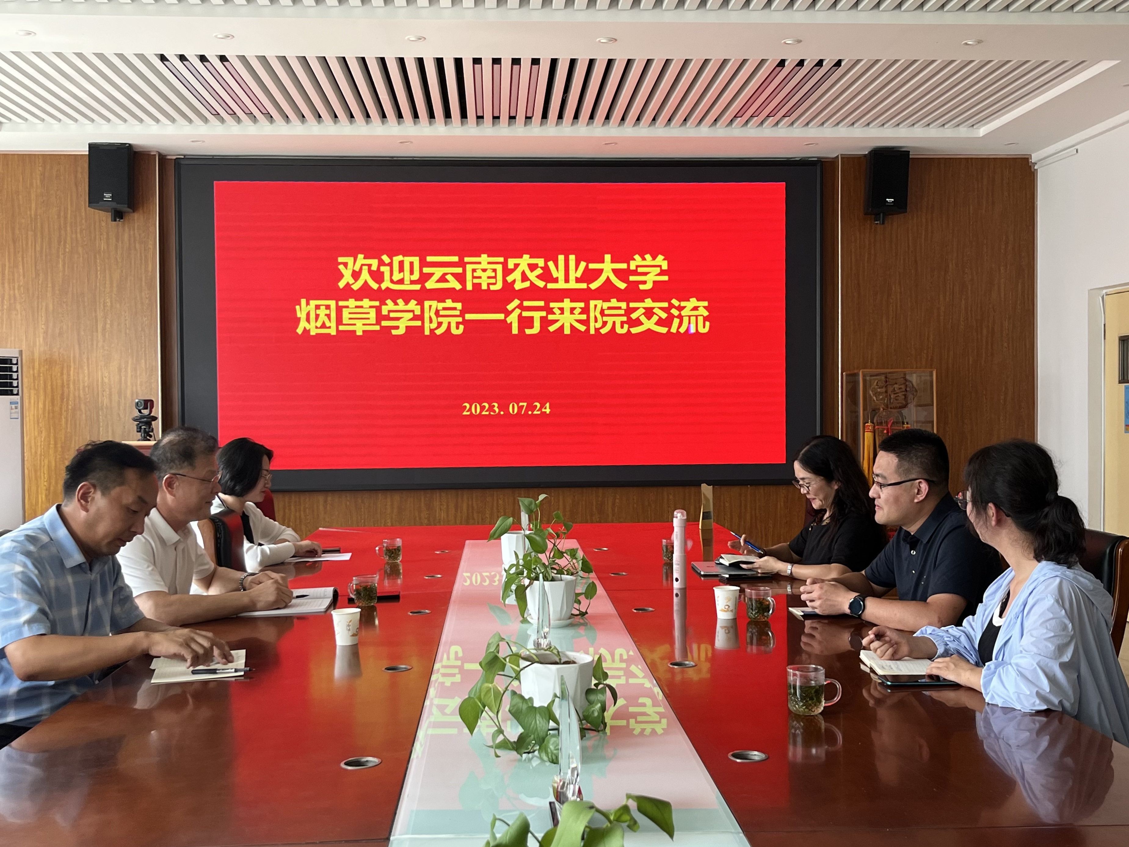 7月24日,云南农业大学烟草学院刘雅婷院长一行到访15vip太阳成,学院邀请中国农业科学院烟草研究所副所长戴培刚、山东农业大学烟草系主任杨龙等专家参加交流。副院长赵长星主持交流会。