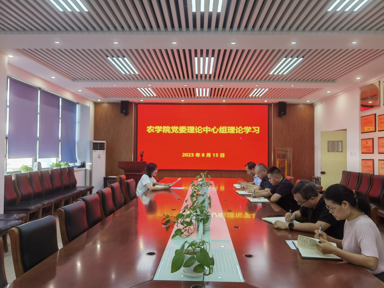 8月15日,15vip太阳成党委在生物楼开展习近平新时代中国特色社会主义思想主题教育集体学习,学院党委理论学习中心组成员参加。党委书记马伟萍主持学习。