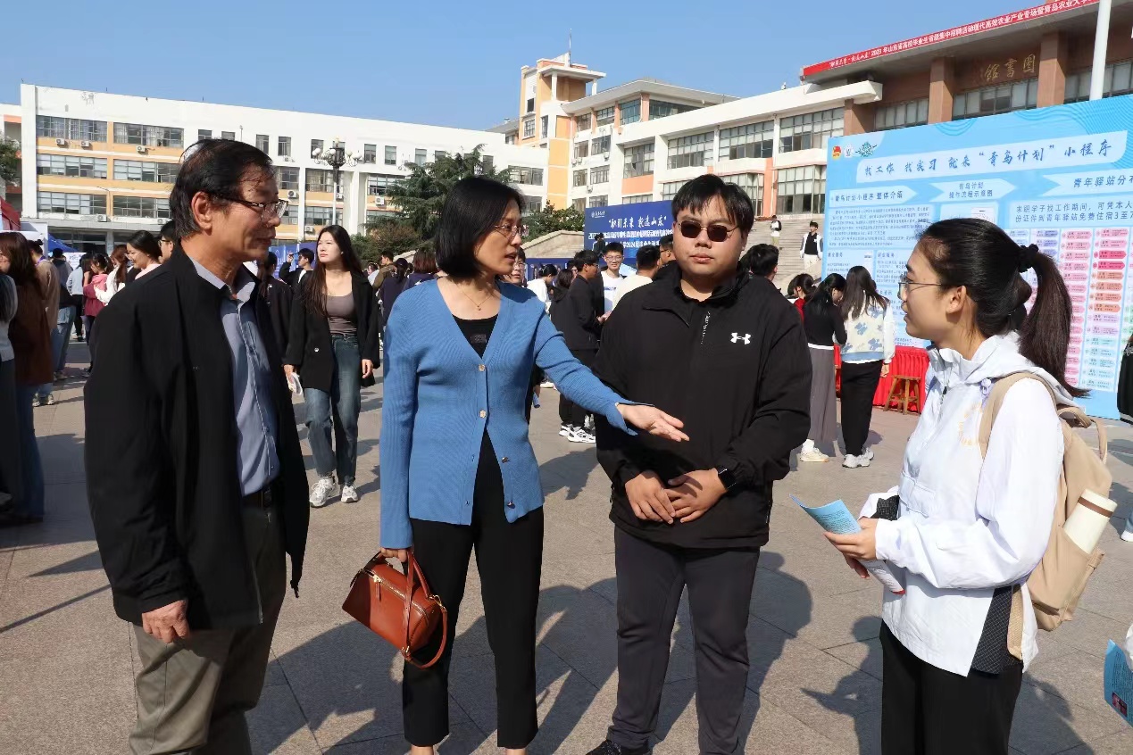 为进一步畅通就业渠道,提供精准就业服务,10月14日,“职引未来,就选山东”太阳成集团tyc151cc2024届毕业生秋季双选会在虹子广场举行。15vip太阳成党委书记马伟萍,院长马武军,党委副书记、副院长孙占伟,团委书记石勇,辅导员李宪翔到场参加。